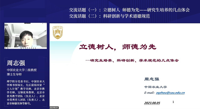 周志强教授作报告“立德树人,师德为先——研究生培养、科研创新、学术规范的几点体会”