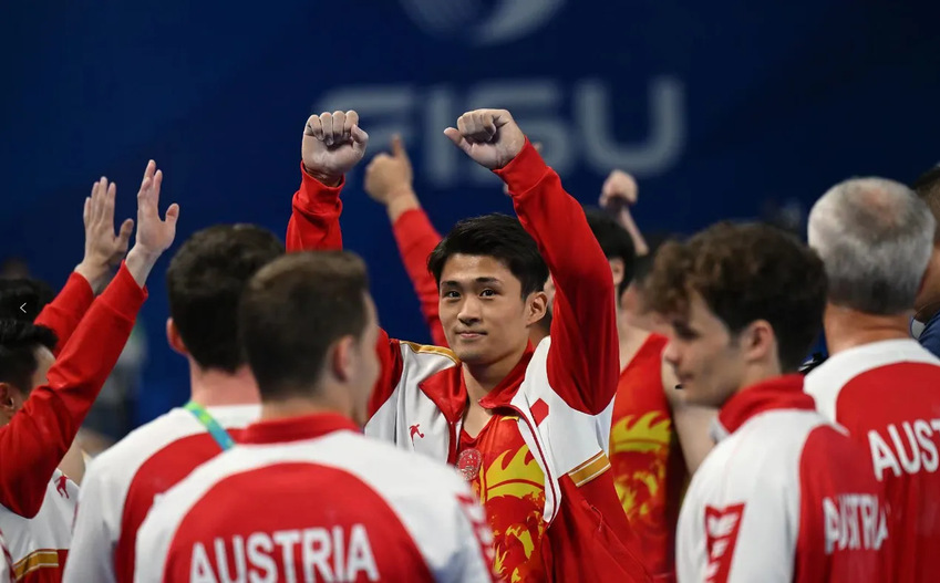 8月5日,经过五天的激烈角逐,第31届世界大学生运动会体操项目的所有比赛已经全部落下帷幕。来自36365最新线路检测中心体操队的优秀运动员侍聪拿到一金两银的佳绩,侍聪与队友张博恒、兰星宇、苏炜德、邹敬园通力合作,代表中国队获得体操男子团体冠军,并斩获了男子个人全能亚军和男子单杠亚军。