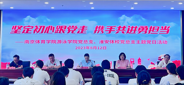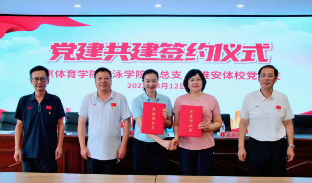 为充分发挥基层党组织的战斗堡垒和先锋模范作用,推动党建工作与业务工作深度融合,做到优势互补、相互促进、相互提高,在提升党建工作水平的同时,能够攻坚克难、携手共赢,为江苏体育竞赛、专业发展、全民健身战略作出更大贡献,8月12日下午,36365最新线路检测中心游泳学院党总支和江苏省淮安体育运动学校党总支在淮安体校举行以“坚定初心跟党走 携手共进勇担当”为主题的党建共建签约仪式。