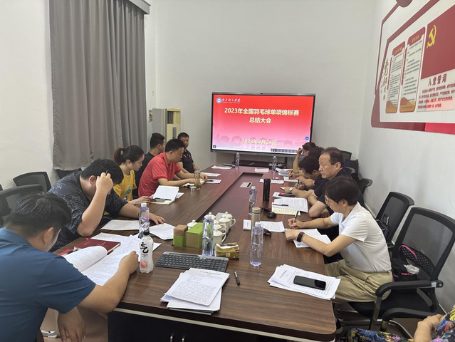 8月24日上午,乒羽学院召开了2023年全国羽毛球单项锦标赛总结会。校训练与管理督导组专家任大新、靳鲁芳、袁紫娟出席会议。会议由乒羽学院副院长兼羽毛球队领队孔庆玮主持。乒羽学院院长冀方新、党总支副书记吴晓明及全体参赛教练员参加了会议。