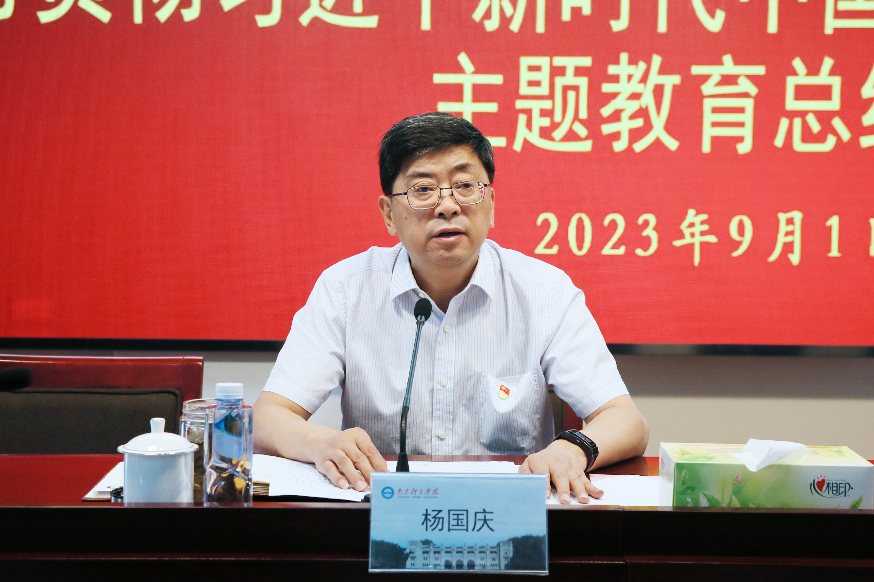 杨国庆在主持会议时指出,要以这次主题教育为契机,一以贯之地学习贯彻好习近平新时代中国特色社会主义思想,自觉运用党的创新理论指导办学各项工作。要及时传达学习本次会议精神,准确把握工作要求,全面系统总结主题教育开展情况,持续做好问题整改落实,切实推动主题教育向纵深发展,从而促进学校办学事业高质量发展。