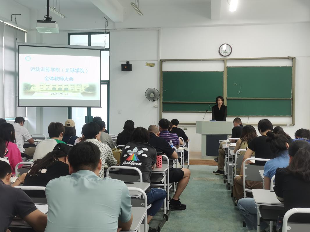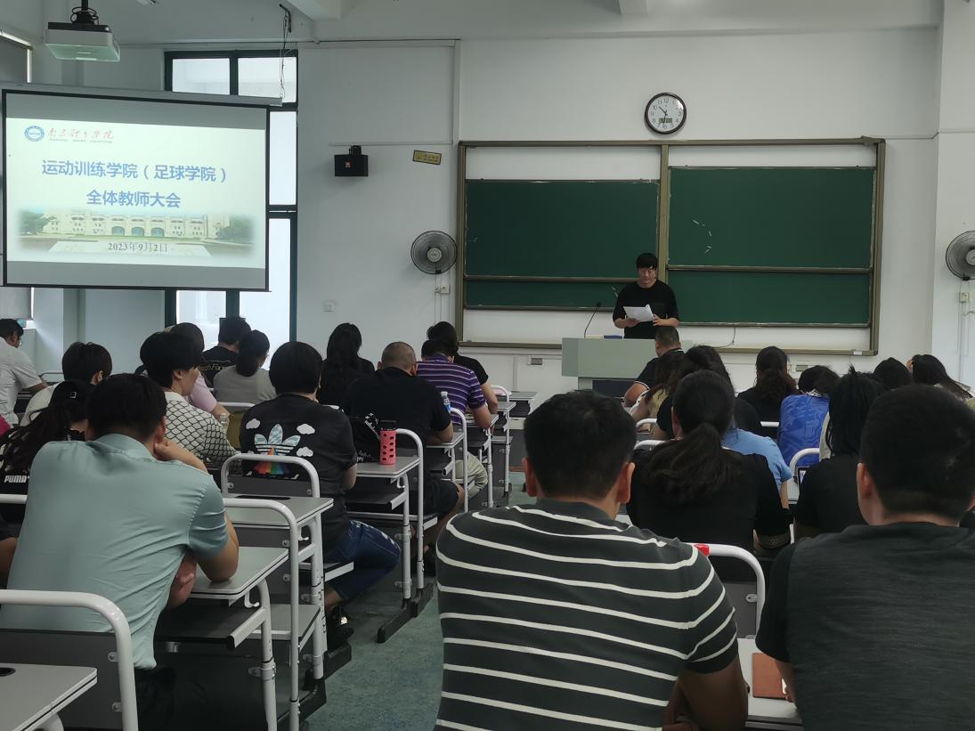 为了全面总结暑期工作,系统推进新学期工作有序开展,9月2日上午,运动训练学院(足球学院)在仙林校区教学楼321教室召开2023-2024学年第一学期工作部署会。学院全体教师参加会议,会议由运动训练学院(足球学院)副院长张明主持。
