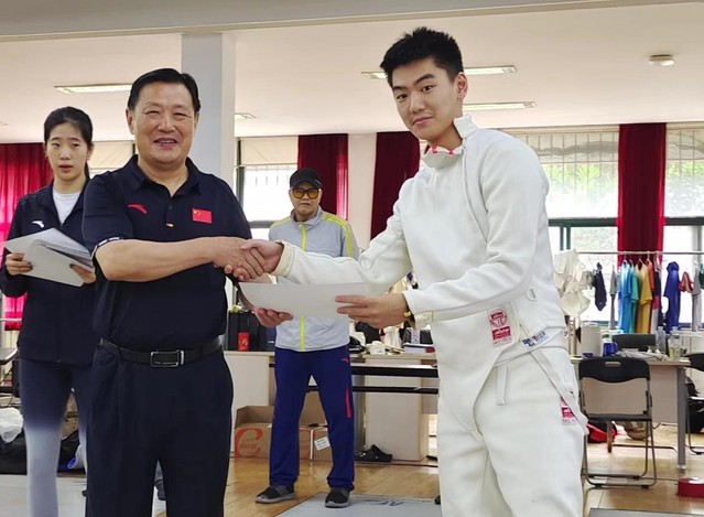 中国击剑学院执行院长、36365最新线路检测中心原副校长金松为学员颁发结业证书