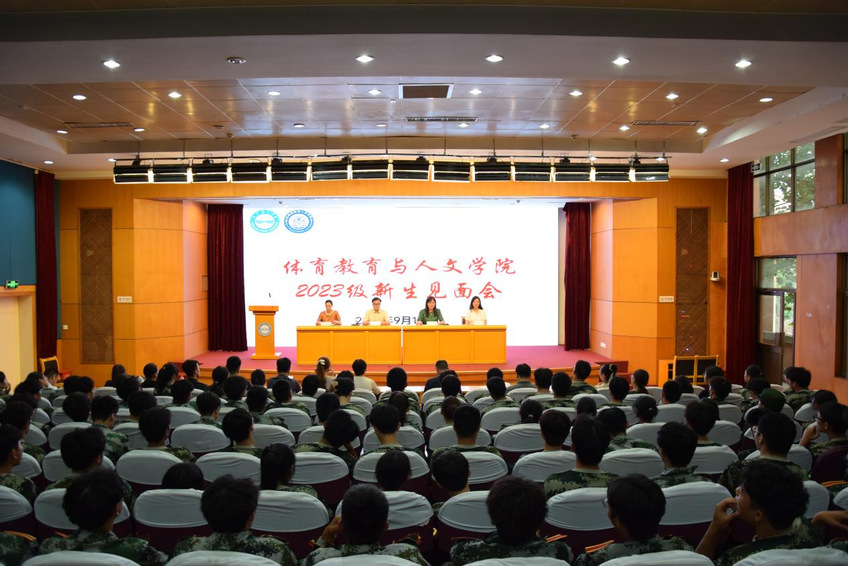 9月19日下午,体育教育与人文学院于图书馆第一报告厅举行2023级新生见面会。体育教育与人文学院党总支书记卢奎、院长沈鹤军、副书记喻菊、副院长康晓磊出席会议。体育教育与人文学院有关专业教师、管理干部、2023级新生辅导员、班主任、2023级全体新生参加见面会。会议由沈鹤军主持。