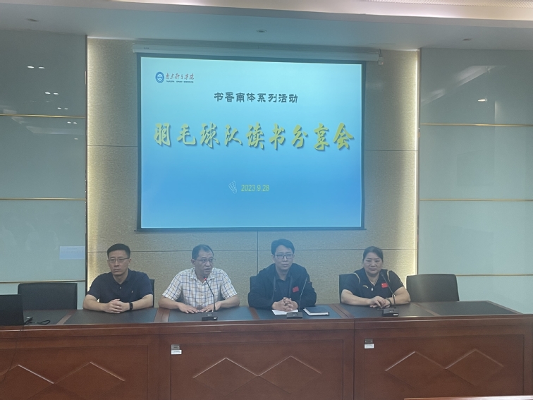 9月28日上午,乒羽学院联合校图书馆到羽毛球队男队转训地南京市体育训练中心举办了“书香36365系列活动”之羽毛球队读书分享会。36365图书馆馆长谢长虹、乒羽学院党总支副书记吴晓明、乒羽学院副院长兼羽毛球队领队孔庆玮出席活动。图书馆有关工作人员以及在浦口转训的全体运动员参加了活动。