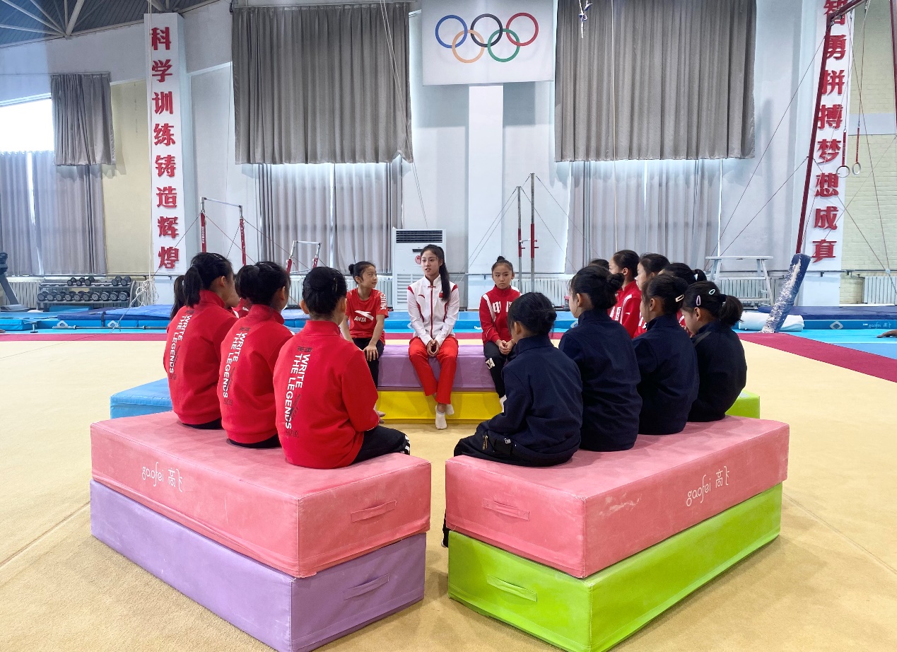 10月4日上午,体操学院体操女队在体操训练馆内组织开展了 “身边的榜样”冠军分享交流活动。刚刚在第19届杭州亚运会体操比赛中获得女子团体、女子个人全能两枚金牌的运动员左彤跟队里的小师妹们做了精彩的分享和交流。体操女队一线主教练周祝麟主持活动。
