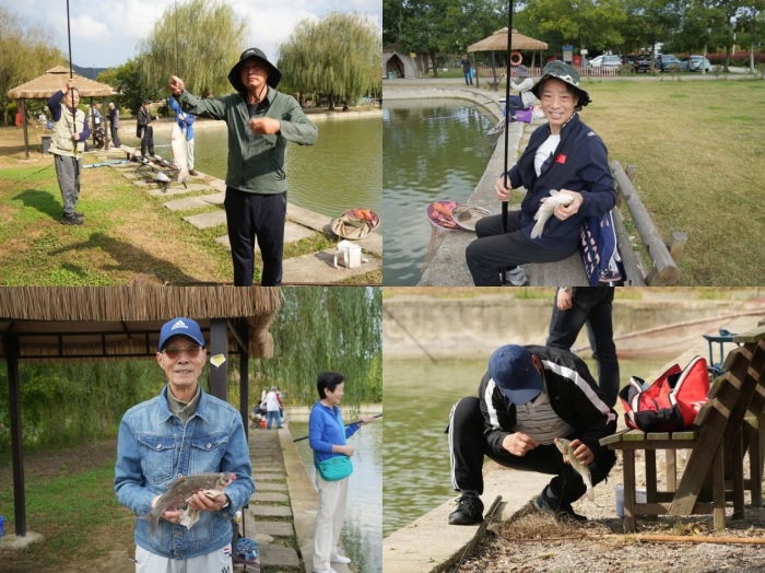活动期间,老同志们个个精神饱满,积极主动配合工作人员,在自己的钓位上,娴熟地展开鱼竿、拴线打窝、调整浮漂、挂耳抛钩,展现出不逊于专业水准的钓鱼技巧。随着一条条鱼提出水面,鱼塘边传来一阵阵欢快的笑声。经过了四个小时的坚持,老同志们鱼篓里装载了满满的收获。
