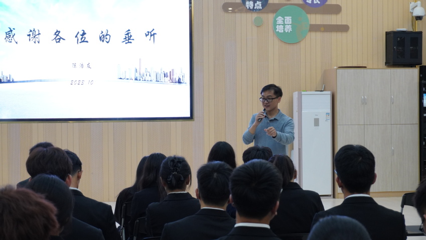 许羽洁就学生干部的经验展开分享,建议同学们在校期间首要任务重视专业课知识的学习,做好模范带头作用,在担任学生干部期间摆正心态,积极参与各项活动,正确平衡好个人的学习和工作,合理规划时间。