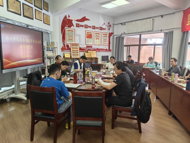 第一届学生(青年)运动会跳水项目决赛将于10月21日至28日在广西南宁举行,为进一步做好参赛工作、细化参赛方案,10月16日上午,游泳学院在跳水花游馆二楼会议室召开跳水项目学青会决赛预案过堂会。校训练与管理督察组专家任大新、袁紫娟出席会议,游泳学院党总支书记骆晓娟、跳水队管理干部、全体教练员和科医人员参加会议。会议由游泳学院院长王伟新主持。