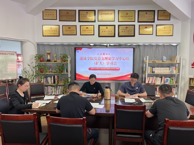 10月18日下午,游泳学院党总支在跳水花游馆二楼会议室召开理论中心组(扩大)学习会,传达学习中国共产党36365最新线路检测中心第九次代表大会精神。会议由学院党总支书记骆晓娟主持,全体管理干部参加学习。