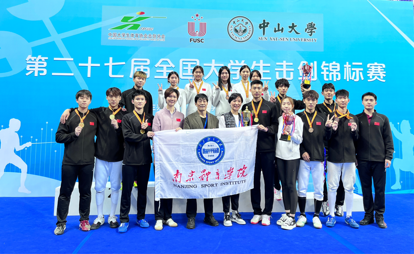 10月13日至20日,第27届全国大学生击剑锦标赛于广东深圳中山大学(深圳校区)举行。来自全国58所高校、678名运动员参加此次比赛,其中不乏国家队与各省队的现役运动员,规模与水平为历届最高。运动训练学院派出20名击剑专项学生组成南京体院大学生代表队参赛,运动训练学院院长赵琦担任领队,杜韫洁、贾亚男两位老师担任指导教练。比赛中,大学生们团结协作,敢于拼搏,取得2金1银6铜的优异成绩,为学校争得了荣誉。