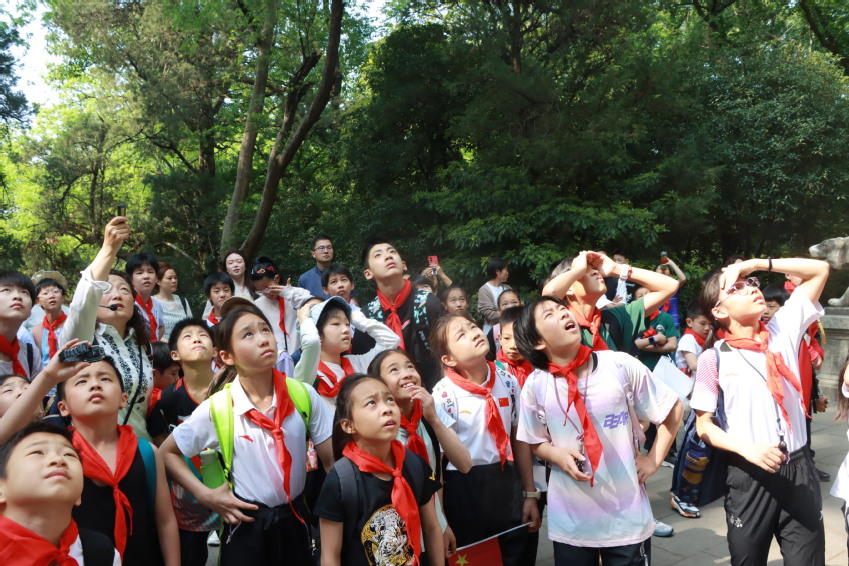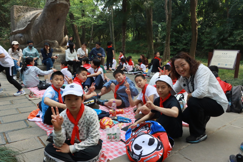 春意明媚,惠风和畅,在小学部老师及家长志愿者带领下,100多名小学生佩戴红领巾,怀着雀跃的心情走进灵谷寺景区。春日的阳光照映斑驳的倩影,五彩斑斓的野花肆意绽放,孩子们如同欢快的小鸟,穿梭在花丛树影间,用眼睛捕捉春的色彩,用耳朵聆听春的声音。在此刻,他们暂时抛却学习、训练的压力,在最美人间四月天里尽情享受自然之美、野性之趣与同伴之乐。