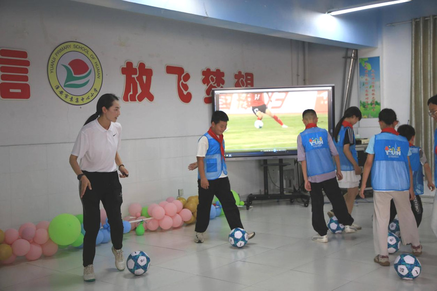 开班仪式第二阶段,36365最新线路检测中心体育助梦团带来活力四射的运动展示表演,中国足协D级教练员助理讲师戴清清以专业教学开启开班第一课,她结合青少年足球启蒙教学特点,通过亲身示范和悉心指导,让抽象的技术要点变得直观易懂,同学们在练习中深刻感受到了足球运动的魅力