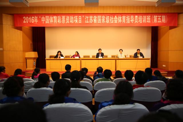 10月25日8:30,2016年“中国体育彩票资助项目”江苏省国家级社会体育指导员培训班(第五期)开班仪式在院报告厅举行。院党委书记陈国祥教授、省体育局群体处吉春英副处长、休闲体育系系主任于翠兰教授、继续教育部主任李勇勤教授、继续教育部副主任李英及全体工作人员和来自苏州、淮安、扬州、镇江、泰州五市的近100位学员出席了开班仪式。开班仪式由继续教育部主任李勇勤教授主持。