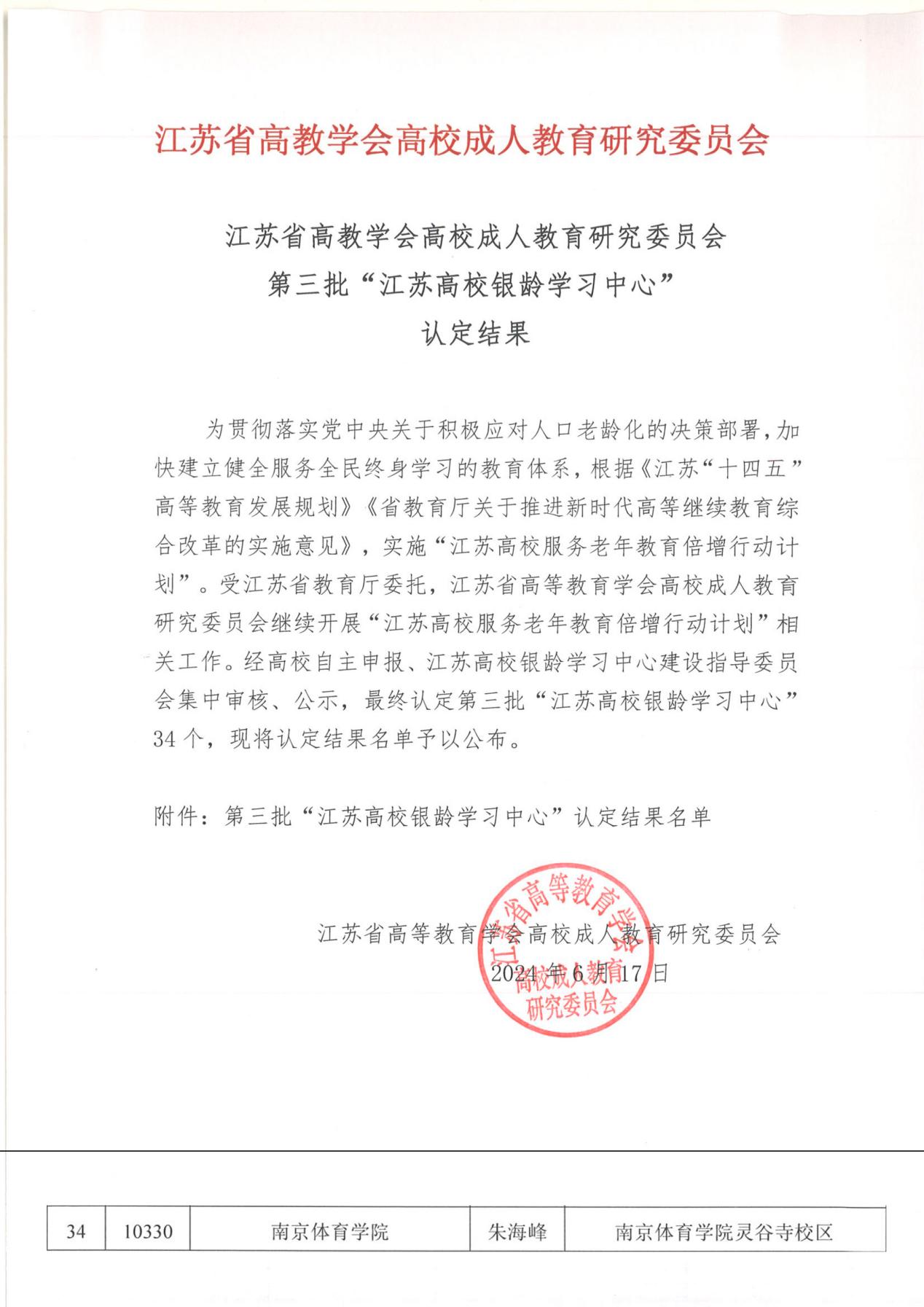 学校继续教育学院按照上级文件要求,联合学校相关教学科研单位,精心组织申报工作,充分发挥36365体育学科专业优势和“体卫融合”领先优势,着力规划品牌项目,课程涉及传统养生功法、老年健康管理等方面,并将进一步发挥36365高教二级学院学科优势,设计开发更多服务终身教育的课程体系,为“江苏高校银龄学习中心”的后续运行打下坚实基础,为助力江苏省老年教育事业发展贡献36365的智慧和力量。