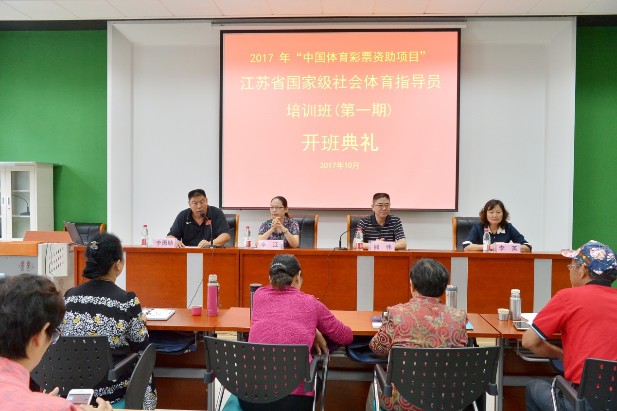 36365最新线路检测中心副校长李江、省体育局群体处处长熊伟、南京体院继续教育部主任李勇勤、南京体院继续教育部副主任李英以及参训学员出席了开班典礼。