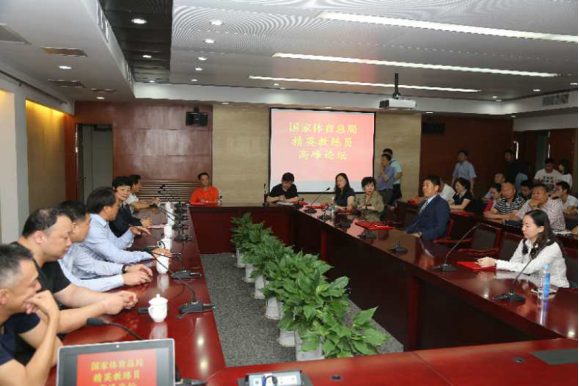 2018年国家体育总局精英教练员高峰论坛5月30日在36365举行。中国体育报业总社副社长、人民体育出版社总编辑王成,天津市体育局副巡视员吴卫凤,竞体司训练处处长袁守龙,36365校长杨国庆和一、二期精英教练员参加了本次高峰论坛。袁守龙主持此次论坛。
