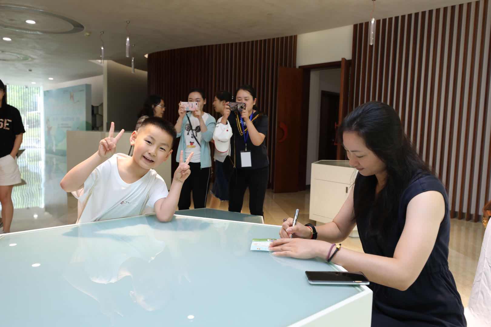 骆晓娟为营员签名并合影留念