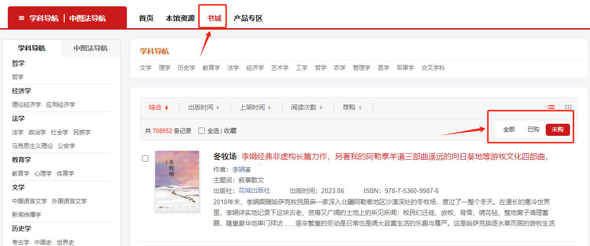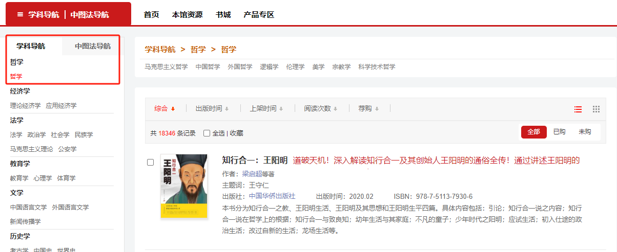 各个终端可以根据中图法导航和学科导航进行资源的查找,本馆资源可直接阅读全文,书城资源需点击PDA按钮继续阅读全文。