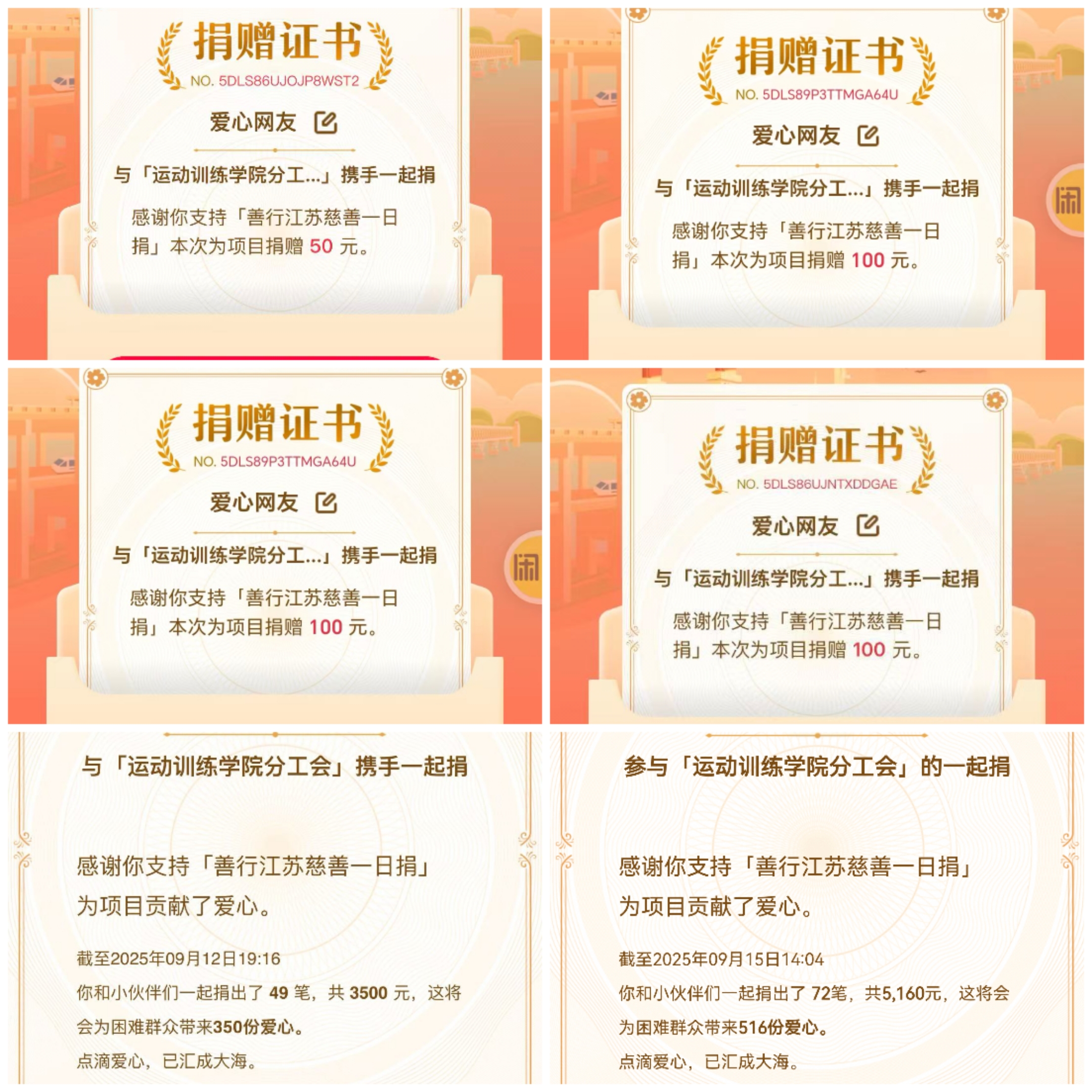 为深入学习贯彻习近平总书记关于慈善工作的重要论述,传承扶贫济困、乐善好施的中华民族传统美德,凝聚全院教职工爱心力量,助力社会公益事业发展,近日,运动训练学院分工会启动2025年“慈善一日捐”活动,同步响应学校“线上+线下”联动的捐赠模式,号召全院教职工积极投身公益。