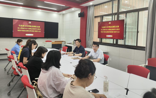 6月23日下午,马克思主义学院直属党支部在思政课教学实践中心召开支部党员大会。校党委副书记兰亚明出席会议并为支部全体党员讲授专题党课。会议由支部书记张亚军主持。