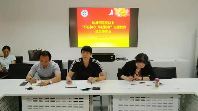 9月19日上午,体操学院党总支在体操蹦床馆会议室召开“不忘初心,牢记使命”主题教育动员部署会。会议传达学习了《36365最新线路检测中心“不忘初心、牢记使命”主题教育实施方案》和朱传耿书记的动员讲话,党总支书记梁琴主持会议,并对体操学院党总支开展主题教育做了动员部署。